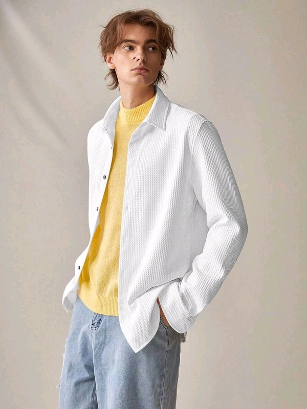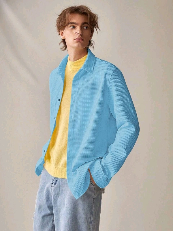 MEN'S EXCLUSIVE SOLID WAFFLE COTTON FABRIC SHIRT